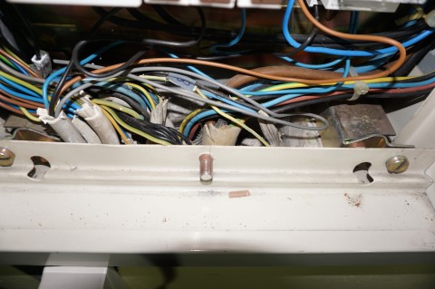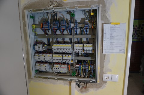 Demontage der vorhandenen Unterputzverteilung, weil sie nicht mehr dem heutigen Stand der Technik entsprach und keiner DGUV Vorschrift 3 Prüfung Stand gehalten hätte.