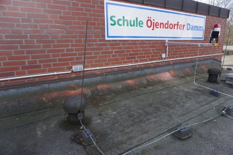 Beleuchtung des Werbebanners Schule Öjendorfer Damm.
