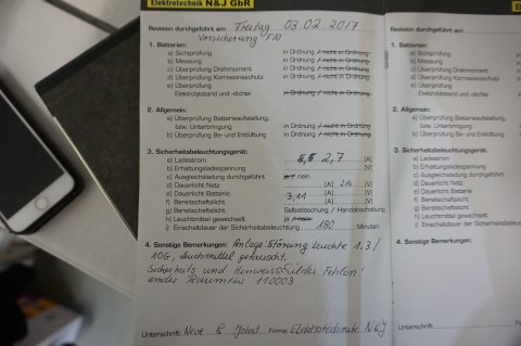 Aufgabenstellung: Prüfung der Sicherheitsbeleuchtungsanlage gemäß DIN VDE 0100-718, DIN VDE 0108-100, DIN EN 50171, 50172 sowie 50272 Teil 2.
