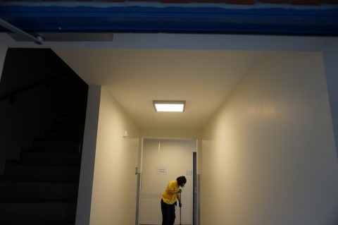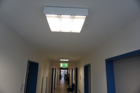 Aufgabenstellung: 12 alte Leuchten mit 78Watt demontieren und 12 neue LED Leuchten mit 22Watt montieren.