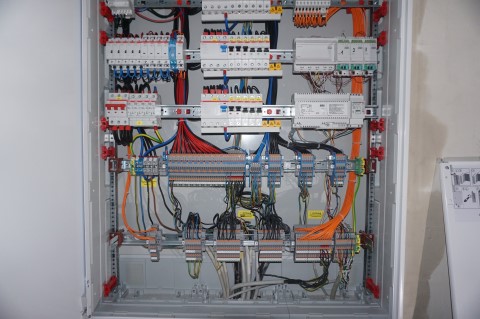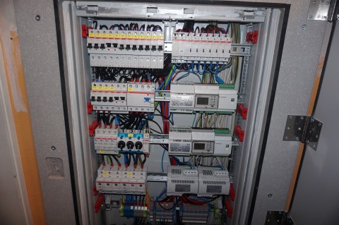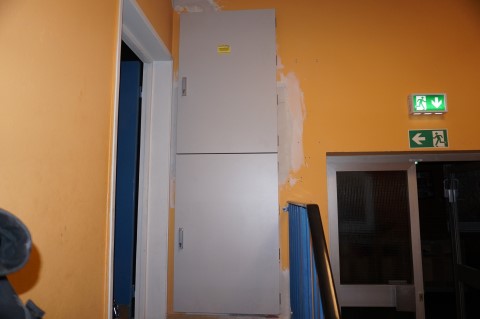 Aufgabenstellung: Erneuerung der Verteilung Hausmeister Büro, Verteilung Aula mit E90 Tür und in den Fluren Bewegungsmelder setzen.