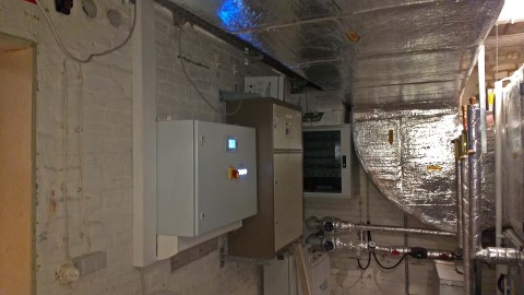 Montage der neuen Inotec Sicherheitsbeleuchtungsanlage mit Meldetableau